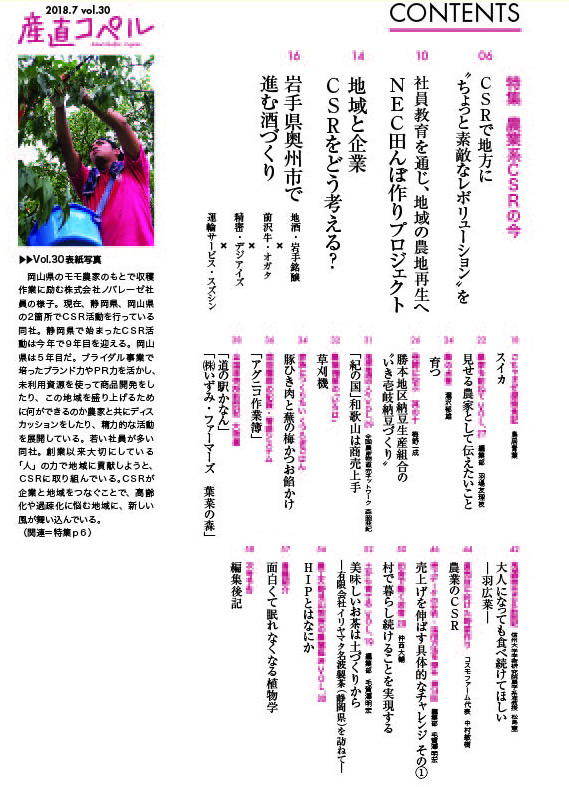 本号の特集は、農業系CSRの今。